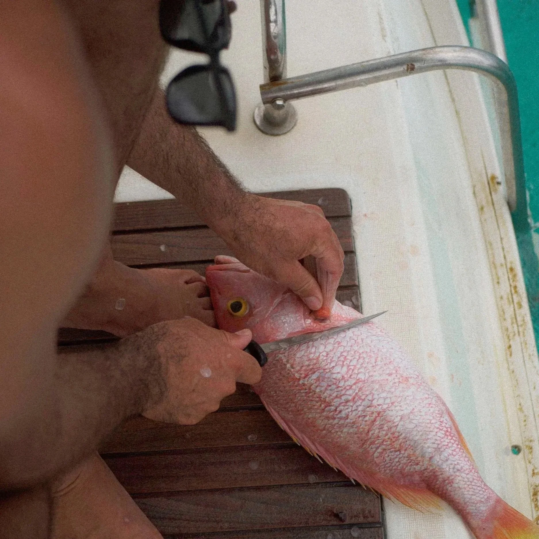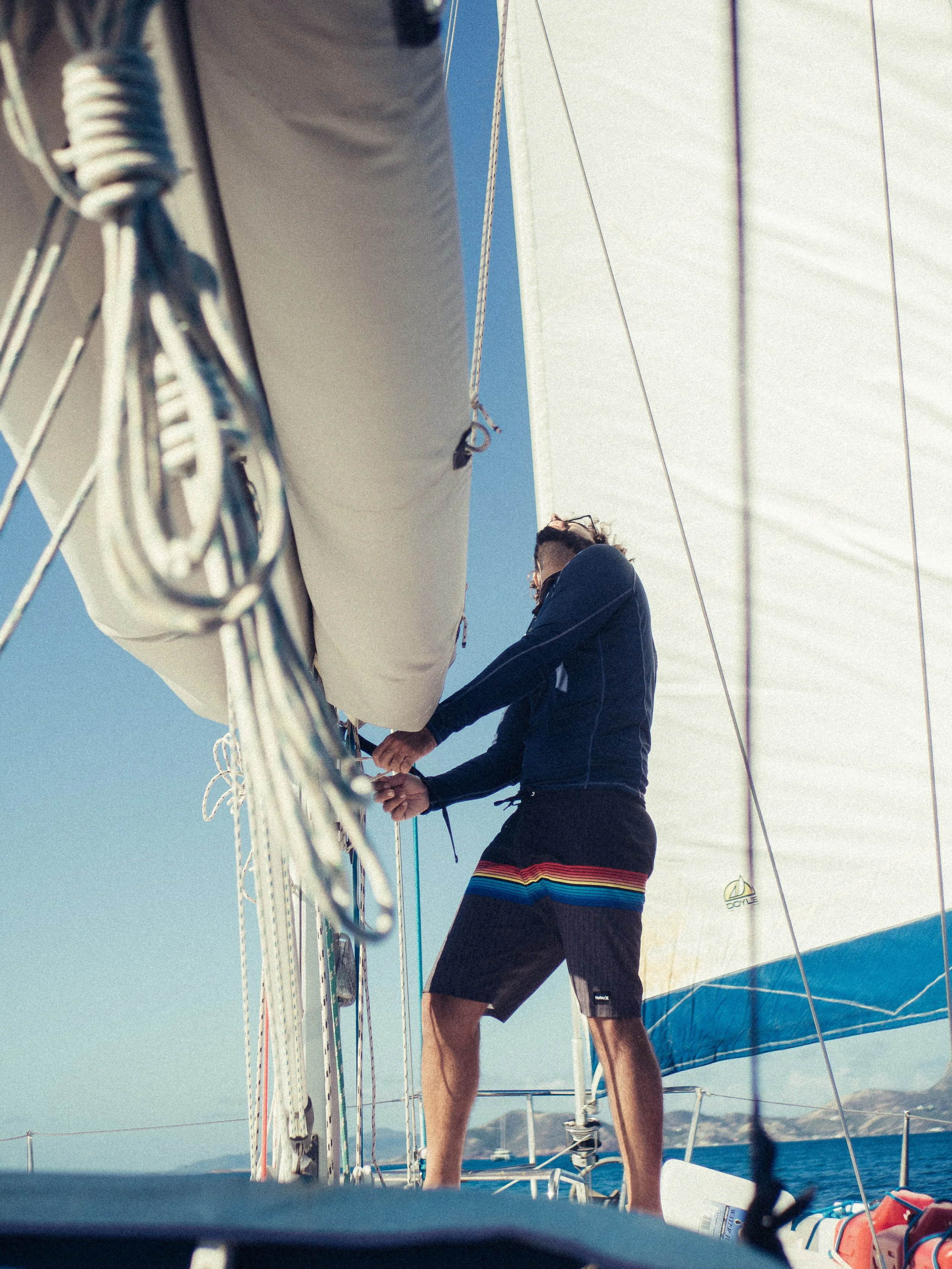 Life on board is about working together: sharing the helm, trimming sails, sharing meals, planning dives, hunting lionfish and keeping our balance.