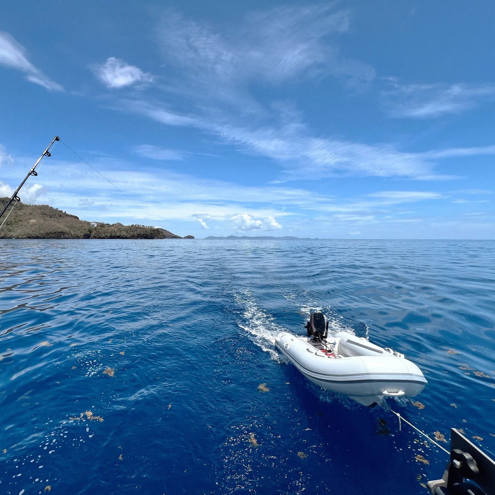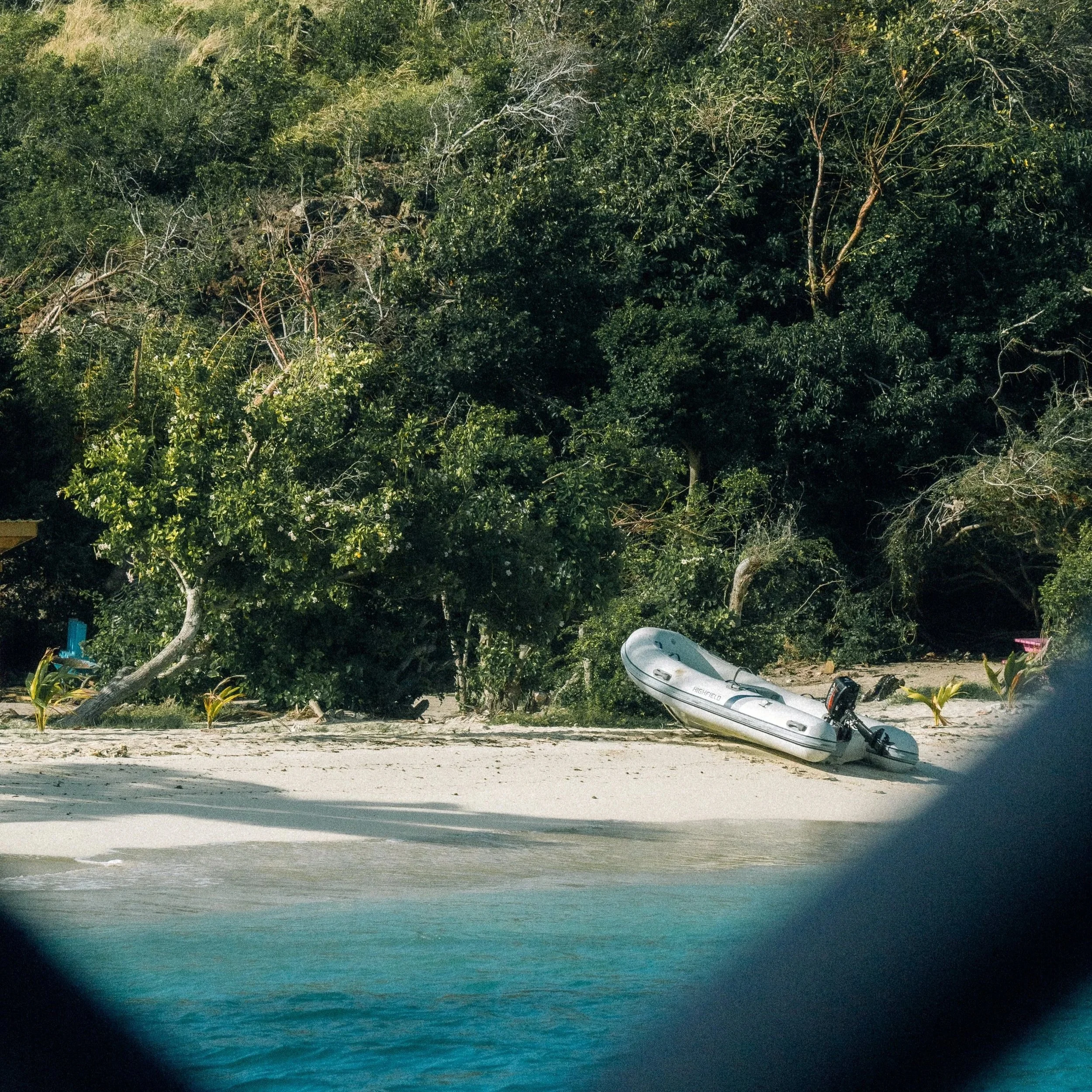 Then we take the tender ashore for a simple sunset dinner and head back aboard, sun-tired and ready for your berth.